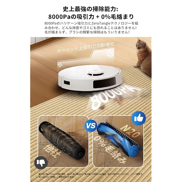 【最新 サイクロン式】 ECOVACS(エコバックス) DEEBOT N20 PRO PLUS ロボット掃除機 水拭き両用 8000Pa強力吸引 毛絡み除去システム 振動モップ 自動ゴミ収集 マッピング 障害物回避 ゼロタングル アプリ操作 落下・衝突防止 Alexa対応 清掃予約 お掃除ロボット ホワイト