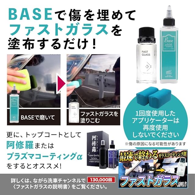 【ながら洗車】 ファストガラス BASEセット 『DIY決定版 2時間スピード硬化のガラスコーティング』 ガラスコーティング 車