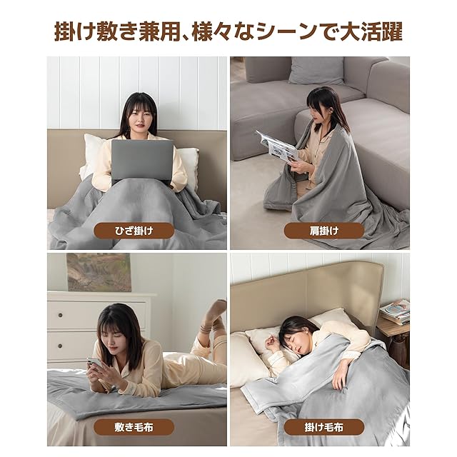【掛け敷き兼用電気毛布】188×130cmのサイズで、防寒器具としても寝具としても使える電気掛敷毛布は、ひとつ持っていると様々なシーンで大活躍。お部屋はもちろん、オフィスで昼寝毛布として、出張、旅行またキャンプ等のアウトドア活動においても活用いただけます。消費電力はより低くなので、 電気代を気にせずお使いになれます。