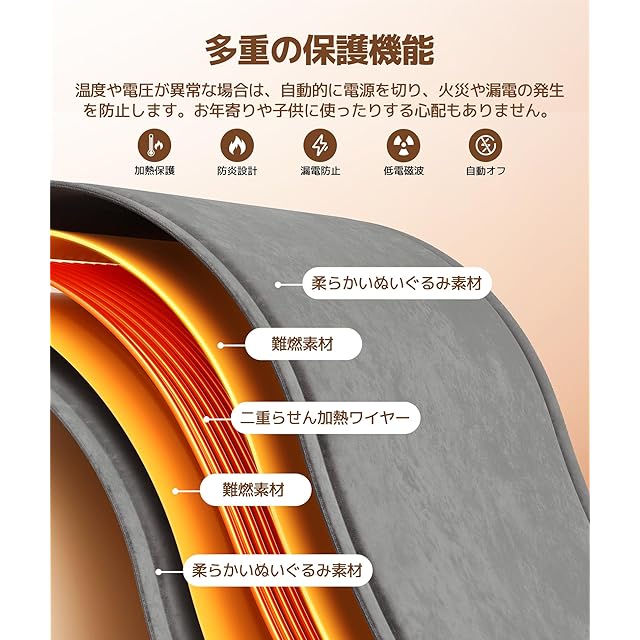 【安全保護安心サービス】安全に使用を保証するため、厳格な加工&検査に基づいて、多重の安全保護あり。温度または電圧異常の場合、自動的に電源がオフになります。切れ忘れた時も自動オフ機能あり、火災や火傷を防止する、お大事な家族を守れ。本製品は購入日より12ヶ月のサポート・保証を提供いたします。初期不良また他何か問題がありましたら、注文番号を添えて弊社までご連絡ください。