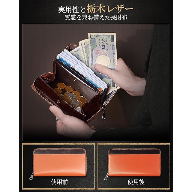 【180日のアフターサービス&ギフト】にも適の包装サイズ:長さ:18cm 幅:10cm 高さ:2.3cm素材:栃木レザー+オイルワックスレザー容量:カードポケット: 16 お札ポケット: 1 小銭入れ:1 フリーポケット:4でございます。180日のアフターサービスが付いており、安心してご購入いただけます。さらに、ギフト包装が施されており、大切な方への贈り物にも最適です。