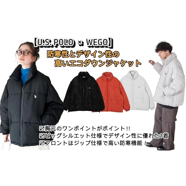 [ウィゴー] WEB限定 別注 U.S. POLO ASSN. エコ ダウンジャケット メンズ ダウン アウター ジャケット 中綿 ブルゾン 防寒 服 ゴルフウェア 秋服 冬服 秋 冬 ギフト プレゼント メンズ L ブラック