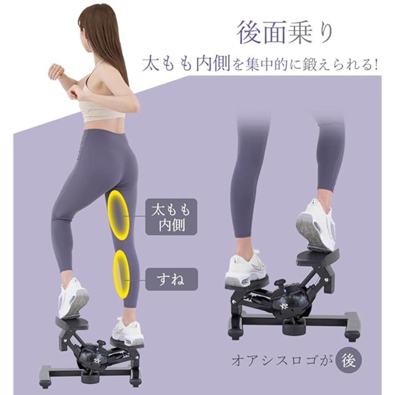 【乗る向きで変わる鍛える部位】 ツイストステッパーだから正面乗りでヒップを集中的に鍛えられ、後面乗りで太もも内側を集中的に鍛えられます。