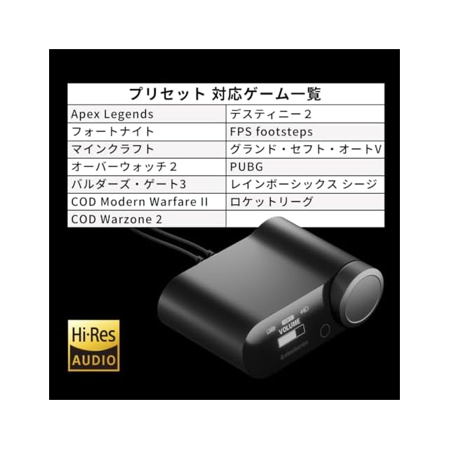 【SteelSeriesヘッドセットに最適化されたサウンド設定】GameDAC Gen2(ベースステーション)本体のプリセットはSteelSeries製ヘッドセットを用いて作成されました。レンジが広く、くせのないフラットなサウンドのSteelSeriesのヘッドセットをご使用いただく事で、より最適なサウンド設定を体感いただけます。