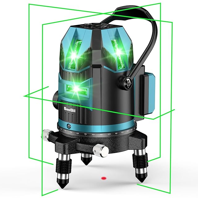 【2025年新登場】SeeSii レーザー墨出し器 グリーンレーザー 5ライン 水平器レーザー 墨出し器 5線6点 4方向大矩照射 大容量バッテリー2個 レーザーレベル 三脚 屋外 小型 回転レーザー線 自動補正 高輝度 高出力 軽天作業 IP54防水 タイルの張替え 建設 建築 DIYなど