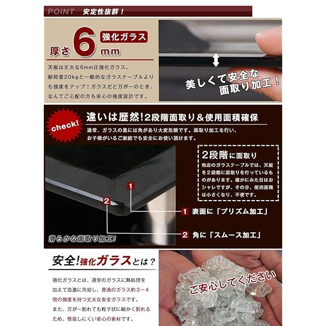 【強化ガラスを採用】6mm強化ガラスを採用で、万が一の不安なし。ガラスの縁は面取り加工で、優しいものになります。