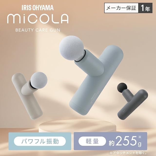 【MICOLA 筋膜リリースガン/パワフルに全身ケア】本製品は自宅で簡単に、体のメンテナンスができる筋膜リリースガンです。筋肉のケアに加え、リフレッシュすることができます。軽量でコンパクトかつ、パワフルに振動します。またダークグレー、ブルー、モカの3カラー展開で、自分の生活に合ったカラーが選べます。