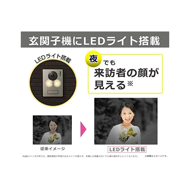 夜でも来訪者の顔が見える、LEDライト搭載。