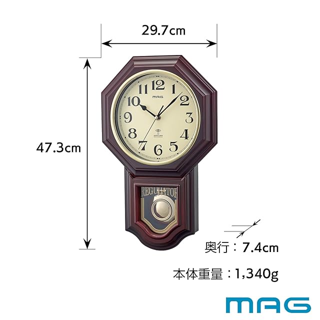 MAG(マグ) 掛け時計 電波時計 振り子 アナログ 鹿鳴館DX 報時 夜間秒針停止機能付き ブラウン W-640BR