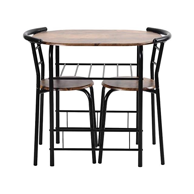 【サイズ】テーブル:幅80x奥行53x高さ75cm チェア:幅48x奥行38x高さ77cm(座面高さ: 46cm) 【耐荷重】テーブル:60㎏ 椅子:130㎏ 【素材】テーブル:合成樹脂化粧繊維板(PVC)、スチール(フレーム)、粉末塗装(スチール部分) 。 チェア: 合成樹脂化粧繊維板(PVC)脚部:スチール(クロームメッキ塗装仕上げ)。 【カラー】 テーブル:ブラウン/ナチュラル チェア:ブラウン/ナチュラル 【重量】約12kg 【梱包重量】約14.2kg 組立品/完成品: 組立品