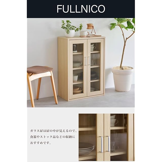 【商品説明】シンプルであきのこないナチュラルな木目柄のフルニコシリーズ。FUL-8055G NAは一人暮らしにピッタリなキッチンキャビネット 食器収納。ガラス扉内は本棚としても利用できます。白井産業の他の商品は「白井産業(shirai)のストアを表示」をクリック。