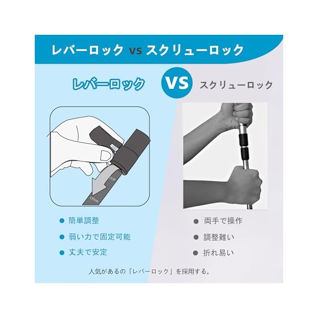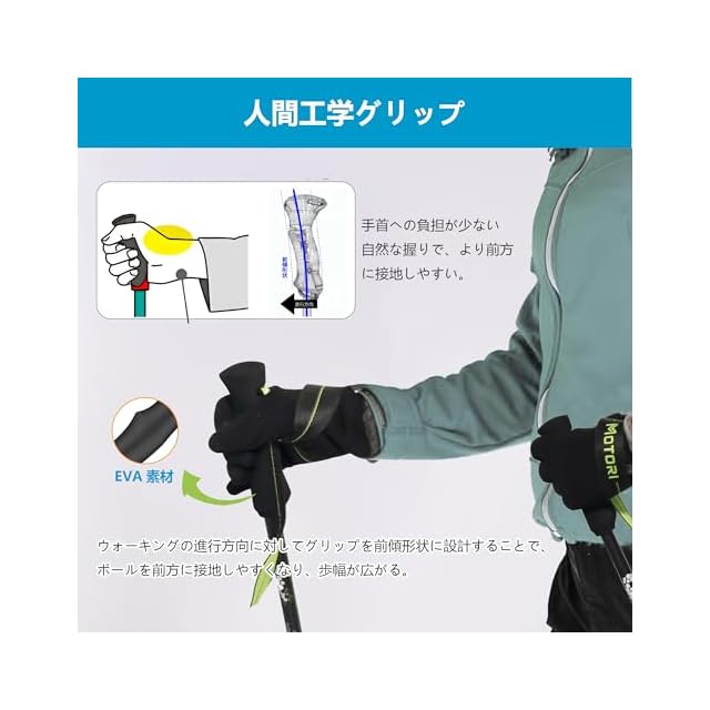 ✅【操作が簡単なレバーロック】MOTORIのハイキングポールは操作が簡単なレバーロックを採用しています。外側から操作する「コントロールロック」モデルが人気です。レバーロックはワンアクションで操作でき、少ない力でも確実に固定できます。