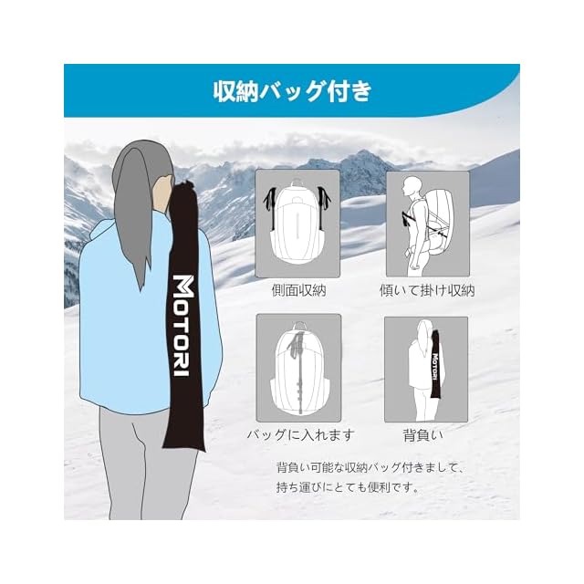 ✅【超軽量】軽量を特徴とし、1本の重量はわずか169g。同クラスの中で最軽量でありながら、衝撃吸収性に優れており、手首や腕の負担を軽減します。 長時間の使用でも疲れにくい特徴があります。 【2種類の収納方法】MOTORIのカーボンファイバー登山ポールは、伸縮と分解収納の2通りの収納方法があります。レバーロックを使用することで、最短63cmから最長135cmの3段伸縮ポールとして調整可能です。ただし、ロック部からポールを引き出すことで、最短53cmの収納が可能です。市販の98%の3段伸縮ポールよりも10cm以上短くなります。※1本の登山ポールには2枚のマジックテープが付属しています。個々の使用状況に応じてご利用ください。