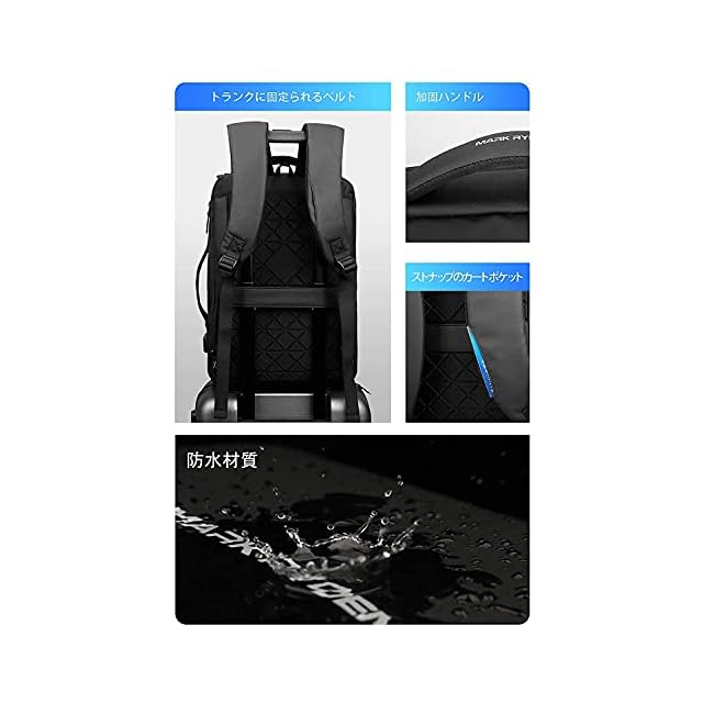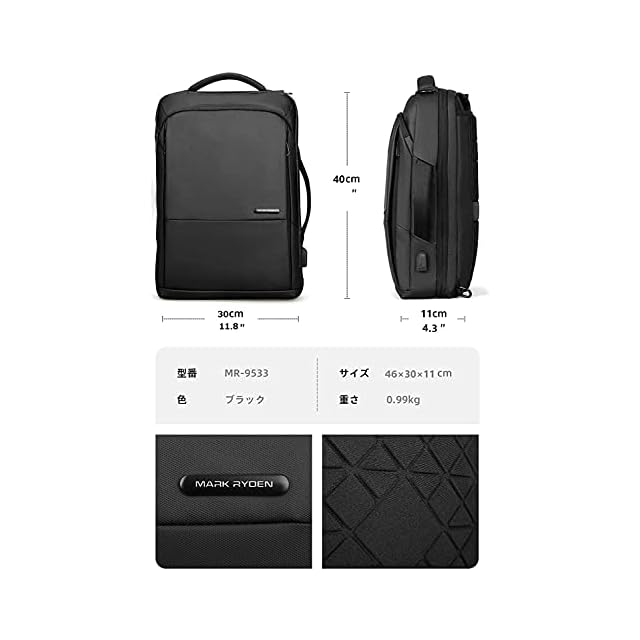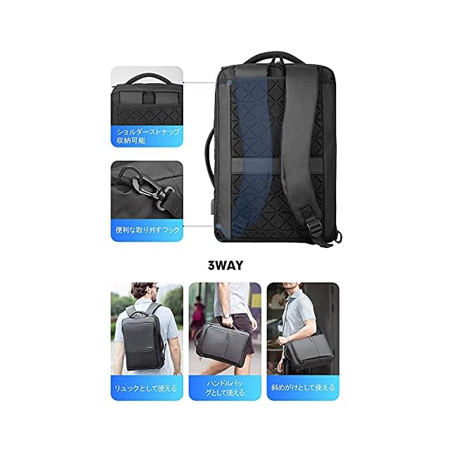 MARK RYDEN [マークライデン] 3WAY ビジネスリュック 薄型 メンズバックパック usbポート付き 15.6インチラップトップ 撥水加工 多機能 防水ポケット リュックストナップ収納可能 斜め掛け荷物ストラップ付き カバン