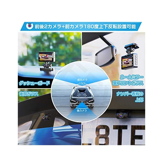【スーパーキャパシタ搭載&180度上下反転】①ドライブレコーダー 前後カメラはスーパーキャパシタ内蔵搭載、リチウムイオン電池のプレミアム代替品でスーパーキャパシタ搭載、防爆、防寒防熱機能、よりよくメモリを保存できます。②他社のドライブレコーダーと比べ、弊社のドライブレコーダー180度上下反転して、ダッシュボードで取り付けできます。※ご注意:前カメラは180度反転したい場合は、まず設定メニューで画面反転を設定する必要があります。ボタンは元の設定方向のままです、反転できません。