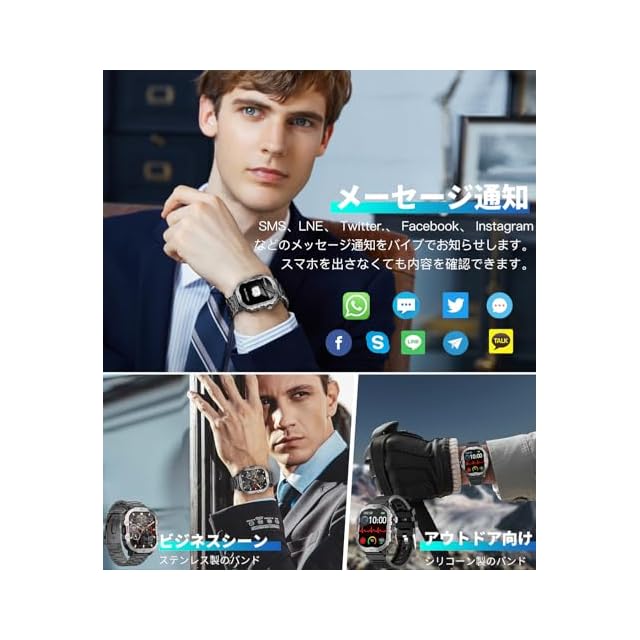 【Bluetooth5.3通話機能付き&メッセージ通知&音声アシスタント】業界最先端のBluetooth 5.3を採用し、スピーカー&高性能マイクが内蔵され、スマホを出さなくても、通話することもできます。ダイヤルパッドがありますので、腕時計側から直接電話をかけられます。よく使う連絡先をあらかじめアプリ側に追加すれば、スマートウォッチ側の電話帳で表示できます。スマホとペアリングすると、Facebook/Twitter/WhatsApp/Line/Instagramなどアプリからのメッセージはリアルタイムでスマートウォッチ側にプッシュされ、腕時計側で直接確認でき、大切なメッセージを見逃さない!さらに、音声アシスタントでスマートウォッチのSiriを呼び出して、音楽を再生したり、天気を確認したり、電話かけたりするなど操作できます。
