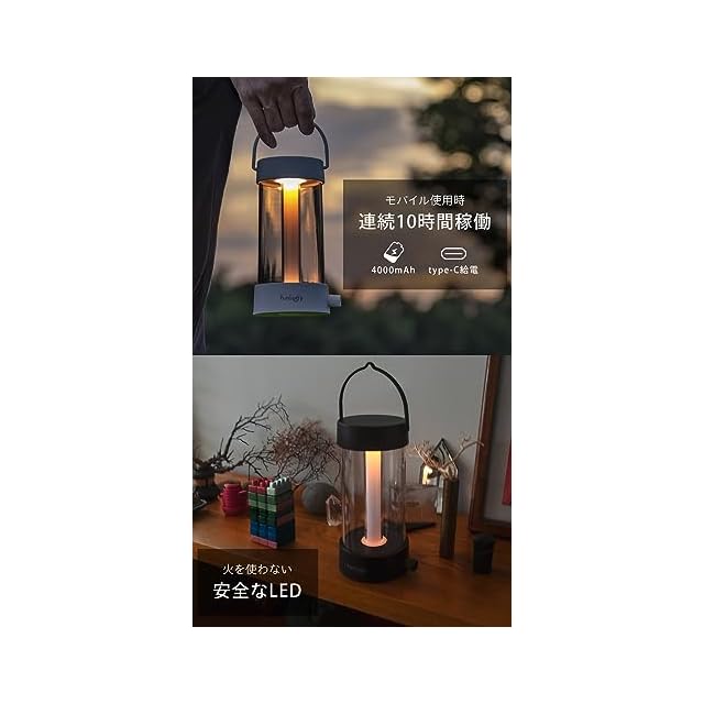 FUNLOGY Lantern(ランタン/LEDランタン)【Type-C 充電式/無段階調光/無段階調色/キャンプ/暖色/バッテリー 内臓/モバイルバッテリー対応/IPX4/日本ブランド/ブラック】
