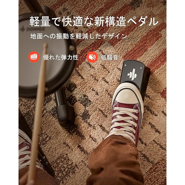 ✨【優れた消音性】Donner電子ドラムは全てのタムドラムとスネアドラムのヘッドは、7インチのメッシュヘッドとなっており、演奏の際には適切なリバウンド感が得られ、打音も静かです。Donnerは新しい構造のペダルを開発して、快適で耐久性があります。hi-hatペダルの軽量設計は大部分の騒音を避けて、最高の体験を提供します
