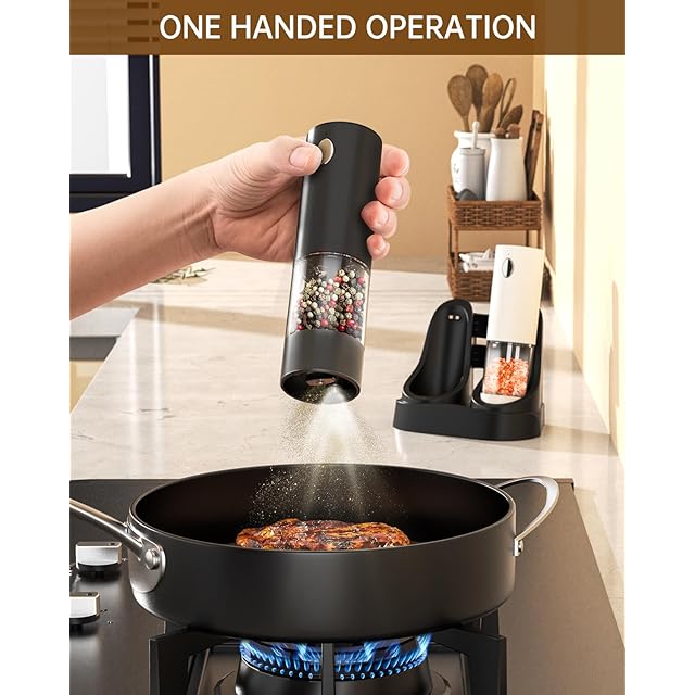 片手操作 - ボタンを押すだけで、この電気ペッパーグラインダーセットは、楽でユーザーフレンドリーな操作を提供します