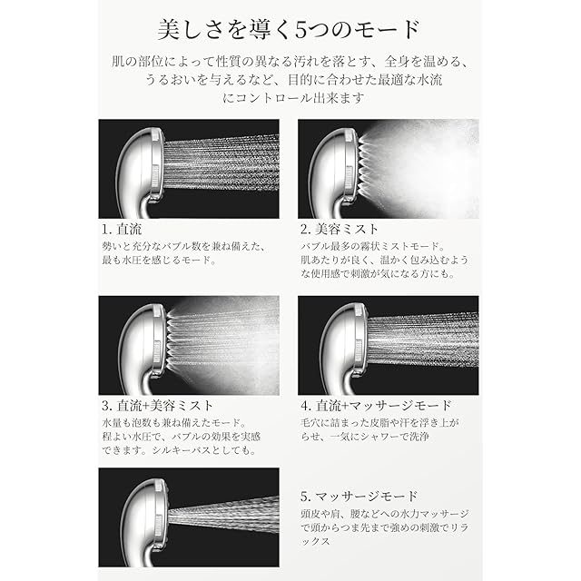 シャワーヘッド マイクロナノバブル 【2025革新・超節水・高洗浄力】 節水 高洗浄力 手元止水 しゃわーへっど 毛穴 ケア 汚れ 除去 美肌 保湿 ミスト マイクロバブル シャワーヘッド シャワー ウルトラファインバブル 5段階モード (標準, ミラーシルバー)