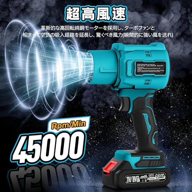 【70MM特大ターボファン&圧倒的な大風量】スーパージェットブロワーのパワーを体験してみてください。革新的な高回転純銅モーターを採用し、70MM特大ターボファンと相まって空気の吸入経路を延長し、空気の運動エネルギーを増大させます。通常よりも強力なブロー力を提供し、最大45000 RMPです。最大風速60m/sで、この電動エアブロワーは表面を素早く乾かし、優れた風流を提供するよう設計されています。風速が弱いという問題点を解決しました。瞬間的に強い風をピンポイントで送れてホコリを吹き飛ばします。頑固な汚れや小さな石でも簡単に吹き飛ばすことができ、使用効果が高く、便利で耐久性があります。磁力で駆動し、二次損失を抑えて、耐久性が大幅に向上するだけでなく、消費電力も20%削減できます!
