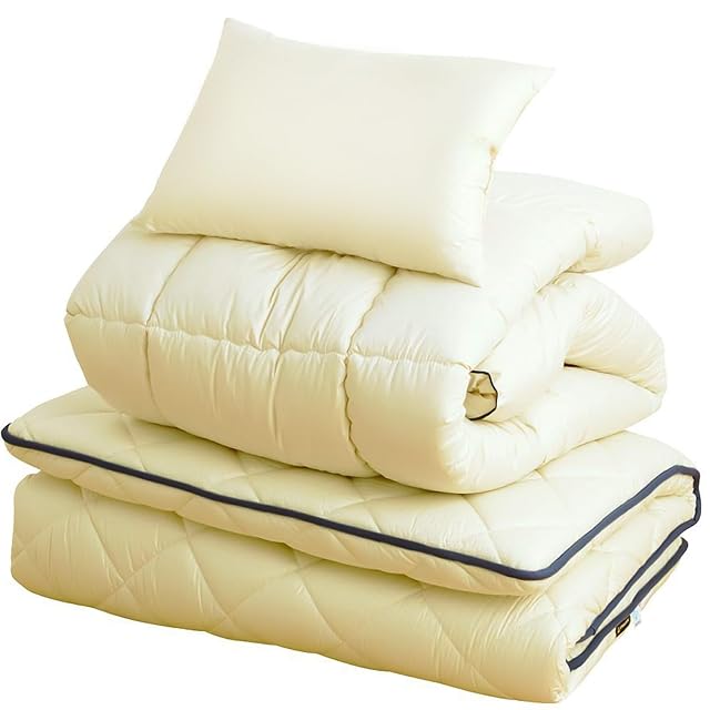 お布団工房 日葵 布団セット 3点セット シングル アイボリー 日本製 羊毛 明治創業のものづくり 自社製造の固綿で腰ラク 防ダニ 抗菌 防臭 吸汗 速乾 コンパクト梱包 アプロディーテ