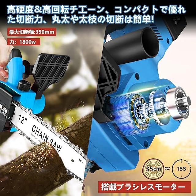 チェーンソー 充電式 コードレス 12インチ 切断径350mm 自動給油 18Vバッテリーに対応 ブラシレスモーター 2つ4000mAhのバッテリー 電動ノコギリ ポータブル ハンディ ミニ 電動のこぎり 日本語取扱説明書【PSE認証済】