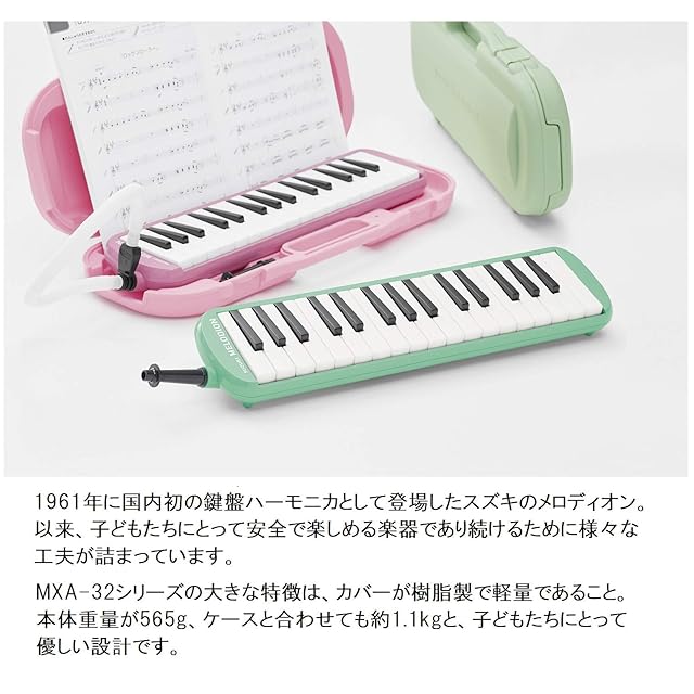 SUZUKI スズキ 鍵盤ハーモニカ メロディオン アルト 32鍵 パステルグリーン MXA-32G 軽量本体 ハードケース