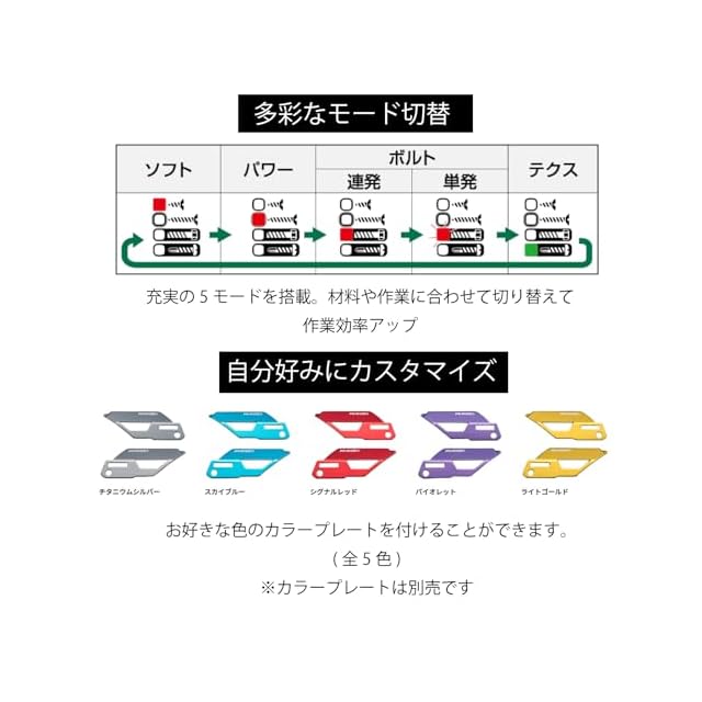 低速でもモーターロックしない制御を採用。連続ねじ締め作業などの重負荷作業はもちろん、小ねじやサッシビスなど繊細な作業にも最適。