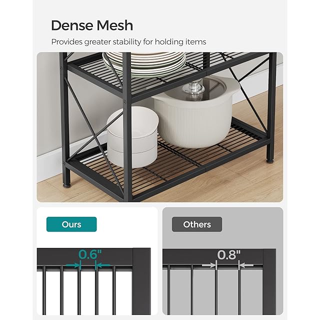 【Xサイドバー】このオープンラックのX字型サイドバーは、構造を強化し、安定性を高め、品物が落ちるのを防ぎ、空間に魅力的な雰囲気を与えます。