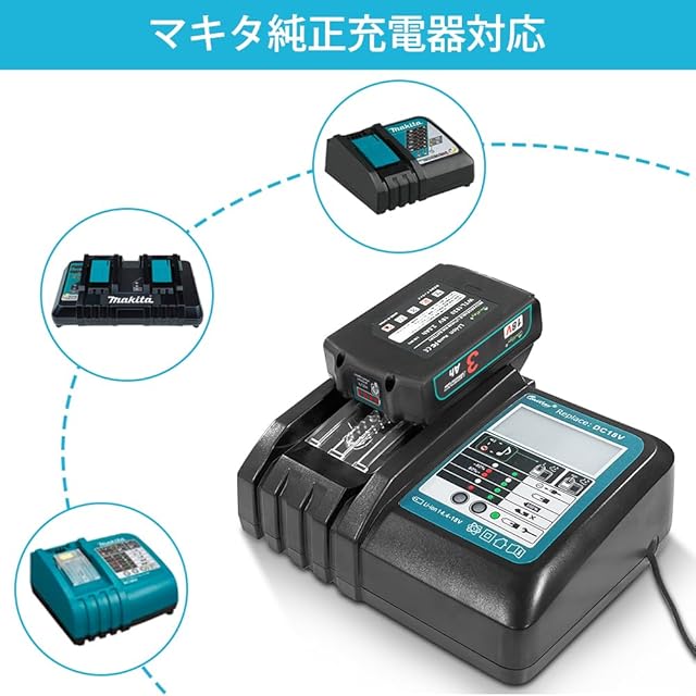 本製品対応充電器モデル: マキタ18v純正低速充電器をすすめます。ご注意:急速充電器に対応できないです、純正低速充電器に充電できます。対応機種:マキタ18v電動工具インパクトドライバ 照明道具 掃除機 チェーンソー 集塵機 ブロアー 空気入れ などマキタの18V純正電動工具