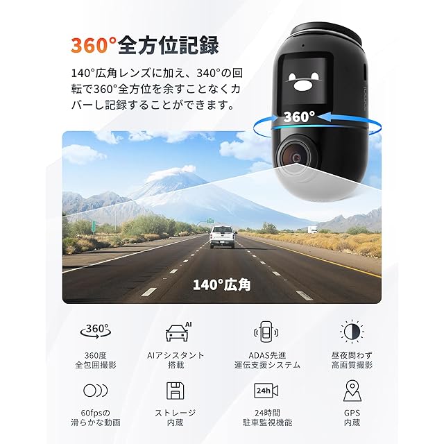 【360°フルビュー】 ドライブレコーダーに特化したグローバルなスマートカーエレクトロニクスカンパニー「70mai」から、AIが360°を監視&記録するドライブレコーダーが登場しました。140°広角レンズに加え、340°の回転で360°全方位を余すことなくカバーし記録することができます。周囲の状況を検知してその瞬間を逃さず、あなたの安心を守ります。70mai Dash Cam Omniは、全方位死角なしであなたの運転をサポートします。