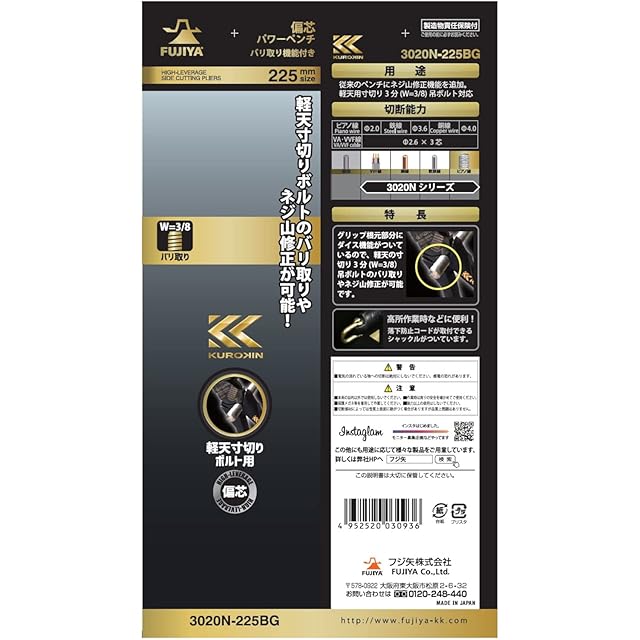 フジ矢(Fujiya) 偏心パワーペンチ 黒金 バリ処理機能付き 225mm 3020N-225BG