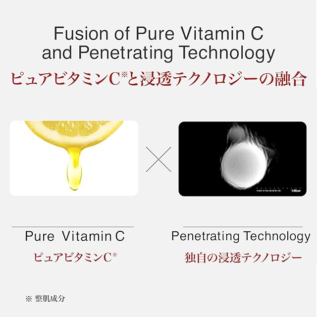 【高濃度ピュアビタミンC*配合】 アスコルビン酸(ピュアビタミンC*)を贅沢に配合し、肌の奥(角質層)まで浸透。透明感のある、なめらかな肌へ導きます。 *整肌成分