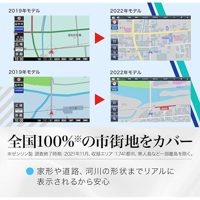 全国の市町村1,741エリア※をカバーした詳細な地図表示。気を付ける場所が分かるドライブサポート。
