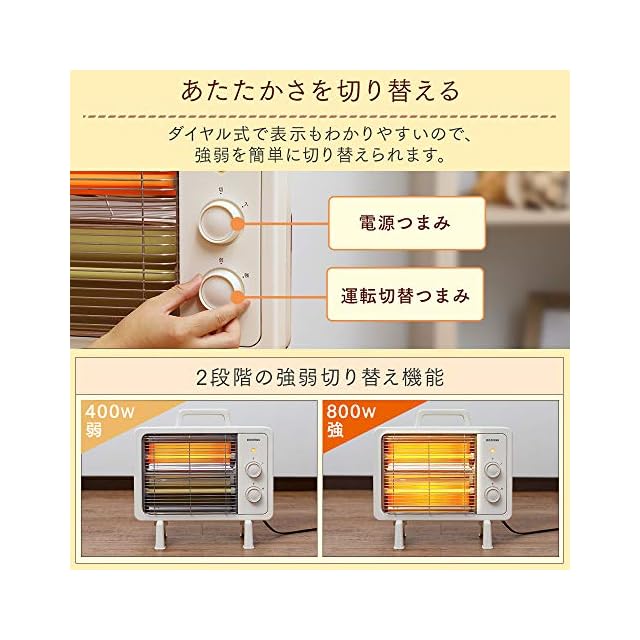 アイリスオーヤマ 電気ストーブ 速暖 転倒時電源OFF 400W/800W 2段階切替 遠赤外線ヒーター IEHD-800 アイボリー