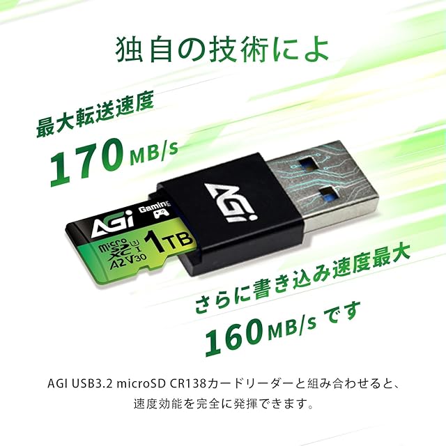 AGI 1TB TF138 マイクロsdカード, Nintendo Switch動作確認済. 高速 MicroSDXC A2 U3 V30 4K UHS-I U3 (読み出し速度最大170MB/s、書き込み速度最大160MB/s) アダプタ付き