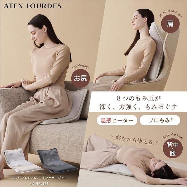 アテックス ATEX ルルド マッサージシート マッサージチェア プレミアムシートマッサージャー ダークグレー AX-HPL368dg