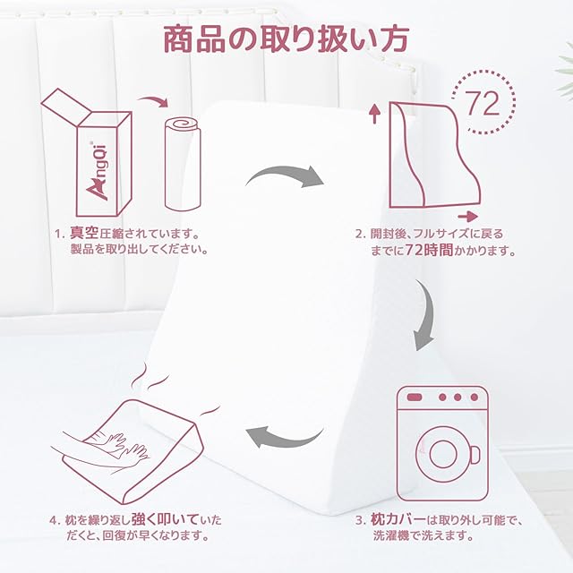 AngQi 三角クッション 三角枕 腰枕 逆流性食道炎 背もたれ クッション なだらか 傾斜枕 ベルボア素材 体にフィット 腰クッション 読書用 妊婦用 お年寄り 老人用 ホワイト
