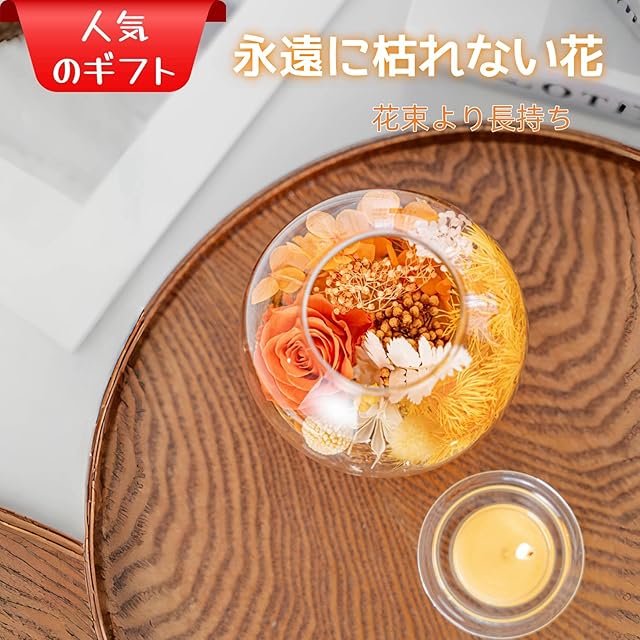 プリザーブドフラワーギフト キャンドルホルダー 枯れない花 誕生日プレゼント女性 ホワイトデー プレゼント人気 お母さんに贈り物 ギフト女友達 ボーイフレンド 彼女 母 かわいい 記念日 誕生日 還暦祝い 退職祝い バラ ギフト引越し祝い 入学 卒業 結婚祝い 敬老の日家庭装飾 雰囲気作り (オレンジ (キャンドルセット付属))