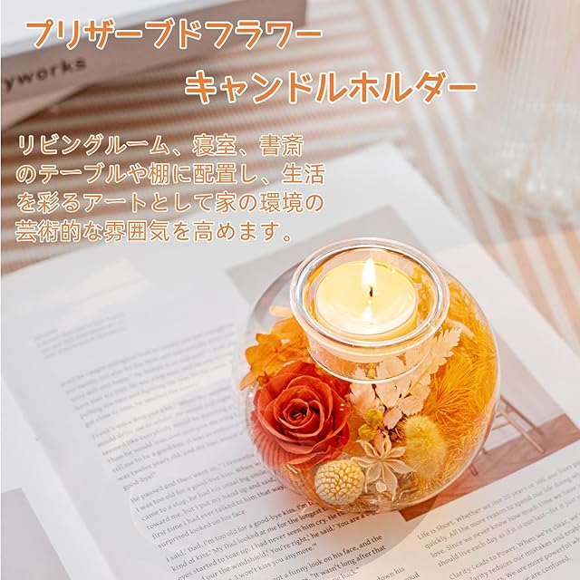 プリザーブドフラワー キャンドルホルダー 本製品は厳選された高品質なガラス素材を使用し、卓越した技術で自然の美とアートデザインを完璧に融合させた永生花キャンドルホルダーです。すべての永生花は特別な加工を施し、花の色と形を保ち、鮮やかさを長期間維持します。高級ギフトボックス付きで、バックルは木製の骨針でできており、高級感があり、しっかりとしている。 親しい友人や家族への贈り物に最適です。人気のギフト 永遠に枯れる贈り物 贈り物としてはもちろん、お家での飾りとしても最適
