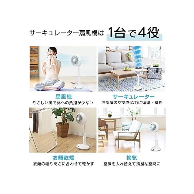 【パワフル送風】サーキュレーター+扇風機の1台で2役。DCモーター搭載だから風を部屋の隅々まで送ることができる。