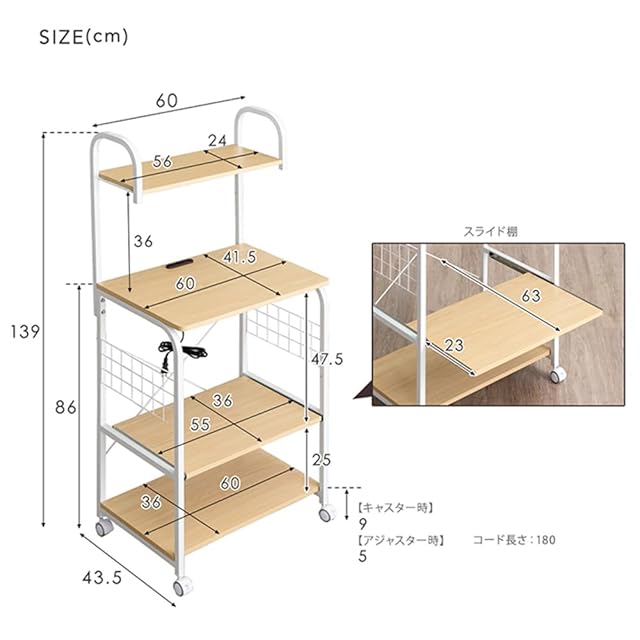 【サイズ】(外寸)幅60×奥行43.5×高さ139cm ※アジャスター使用時の高さ:135cm