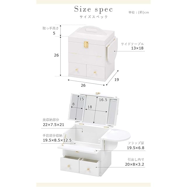 【各部内寸】引出内寸:(約)幅9×奥行8×深さ7cm 収納部内寸(奥):(約)幅22×奥行7×高さ21cm 収納部内寸(手前):(約)幅19×奥行8×高さ12cm