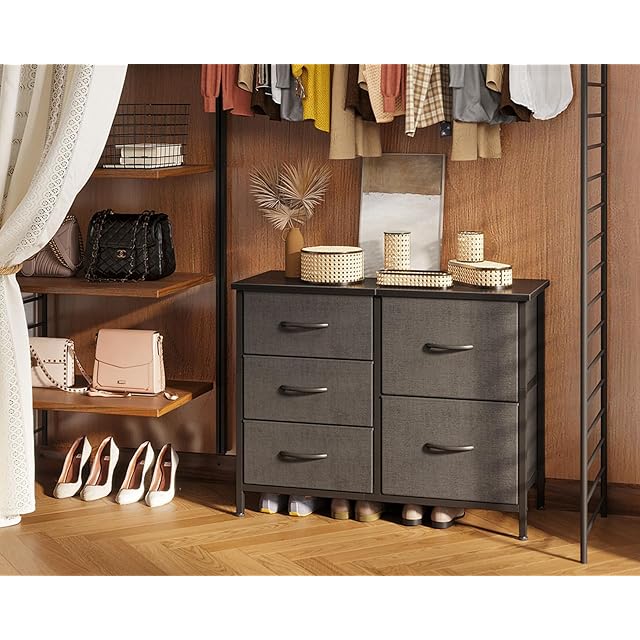 KKL チェスト タンス 収納チェスト 引き出し 3段棚 キャビネット リビング収納 収納ケース 衣装ケース 木製 おしゃれ 大容量 収納棚 脱衣所 衣類収納 転倒防止 安定感 3段5杯(L78×W29×H60cm,グレー)