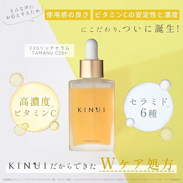 KINUI C25リッチセラム 28ml ビタミンC誘導体 25%配合 セラミド 6種 タマヌオイル トコフェロール ビタミンE 高濃度 オレンジ精油