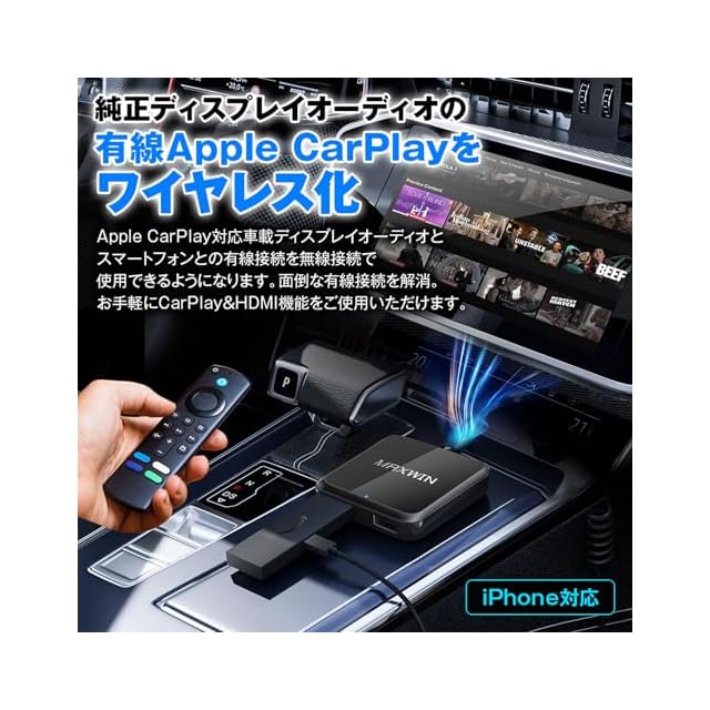 【純正ディスプレイオーディオの有線Apple CarPlayをワイヤレス化】 Apple CarPlay対応車載ディスプレイオーディオとスマートフォンとの有線接続を無線接続で使用できるようになります。 面倒な有線接続を解消。お手軽にCarPlay&HDMI機能をご使用いただけます。
