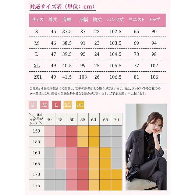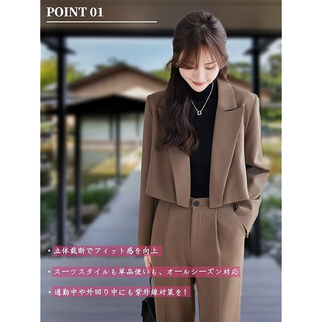 【細部まで気づかい】★ラペルカラーのデザインは、首に自然にフィットし、あなたの気質を引き立てます。★ショートトップは、ボディシェイプを細くするのに良い役割を果たすことができる。★ウエストはゴムが入り、窮屈感なし、着脱しやすいです。(ご注意:パンツの両サイドにはポケットがあるが、胸ポケットはフェイクで、装飾的なものだ。)