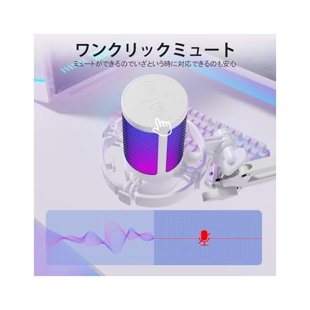 【音も光も自由自在-お部屋の印象に合わせて】このゲーミングマイクは、静的な単色モード動的なマルチカラーモードと動的呼吸モードなど、見事なRGBライトが特徴で、コンピューターゲームのセットアップに合わせて幻想的な異空間を演出、クールなビジュアルの楽しさをもたらす。ゲーマーたちが魅せる超絶プレイや白熱の試合を思う存分楽しもう!RGBボタンを3秒長押しするとRGBライトがオフになります。