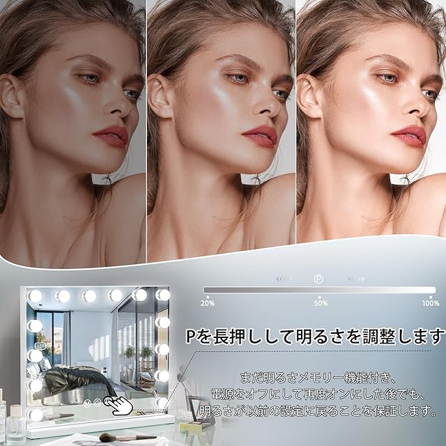 【3つのライトモードと明るさ調整可能】女優ミラーには14個の調光可能な電球があり、暖かい光、自然光、冷たい光に調整できます。 さまざまな明るさレベルを選択することもできます。 ライト付きミラーは寝室、更衣室、パウダールーム、美容室などに適しています。